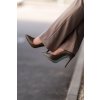 Dámske kožené topánky na podpätku hladké hnedé khaki
