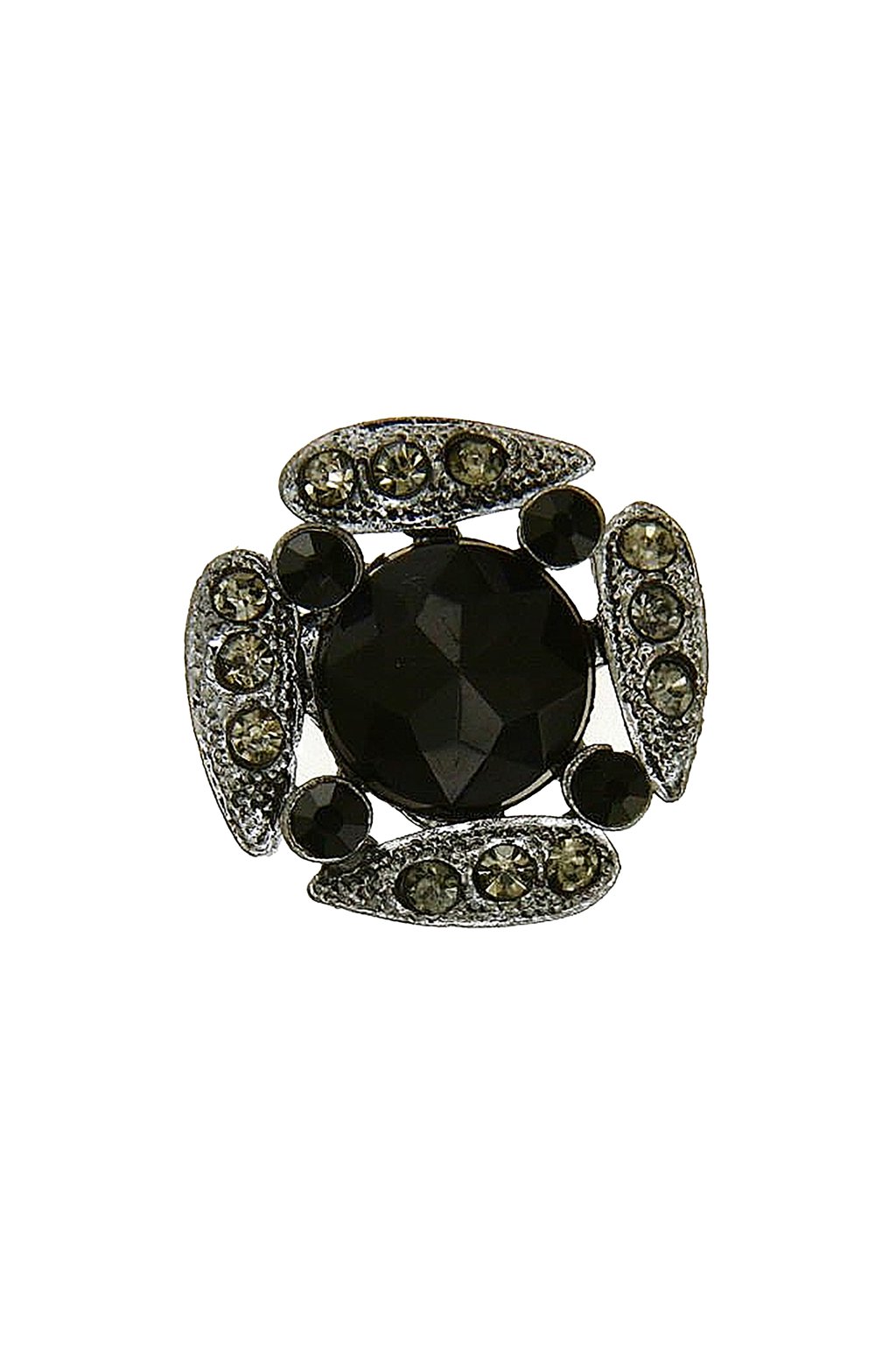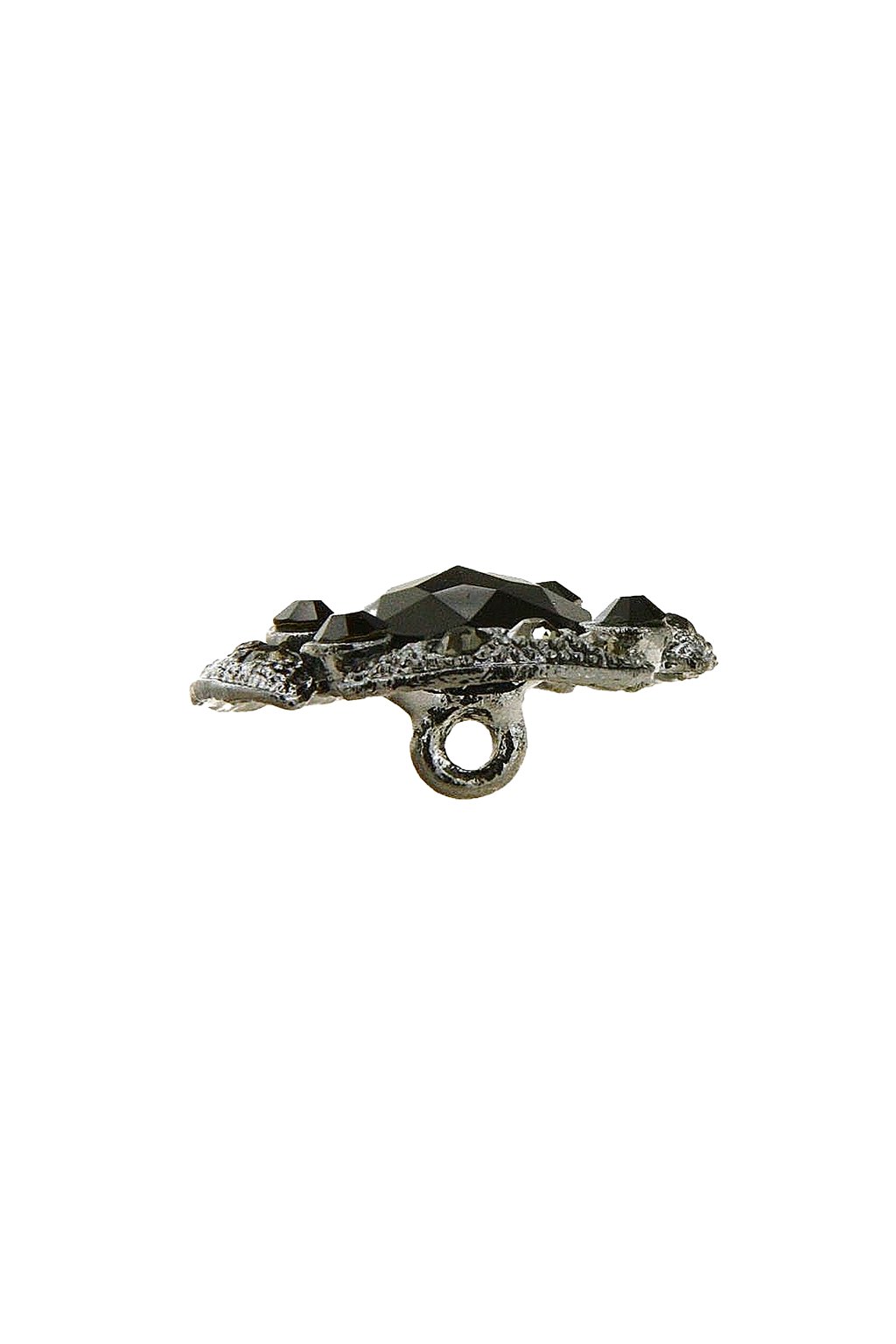 Ozdobný gombík nemagnetického kovového vzhľadu s ozdobnými kryštálovými a čiernymi štrasmi.