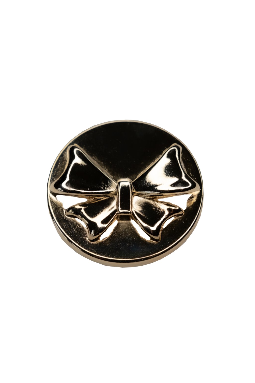 Ozdobný gombík s mašličkou na vrchnej strane zlatej farby.