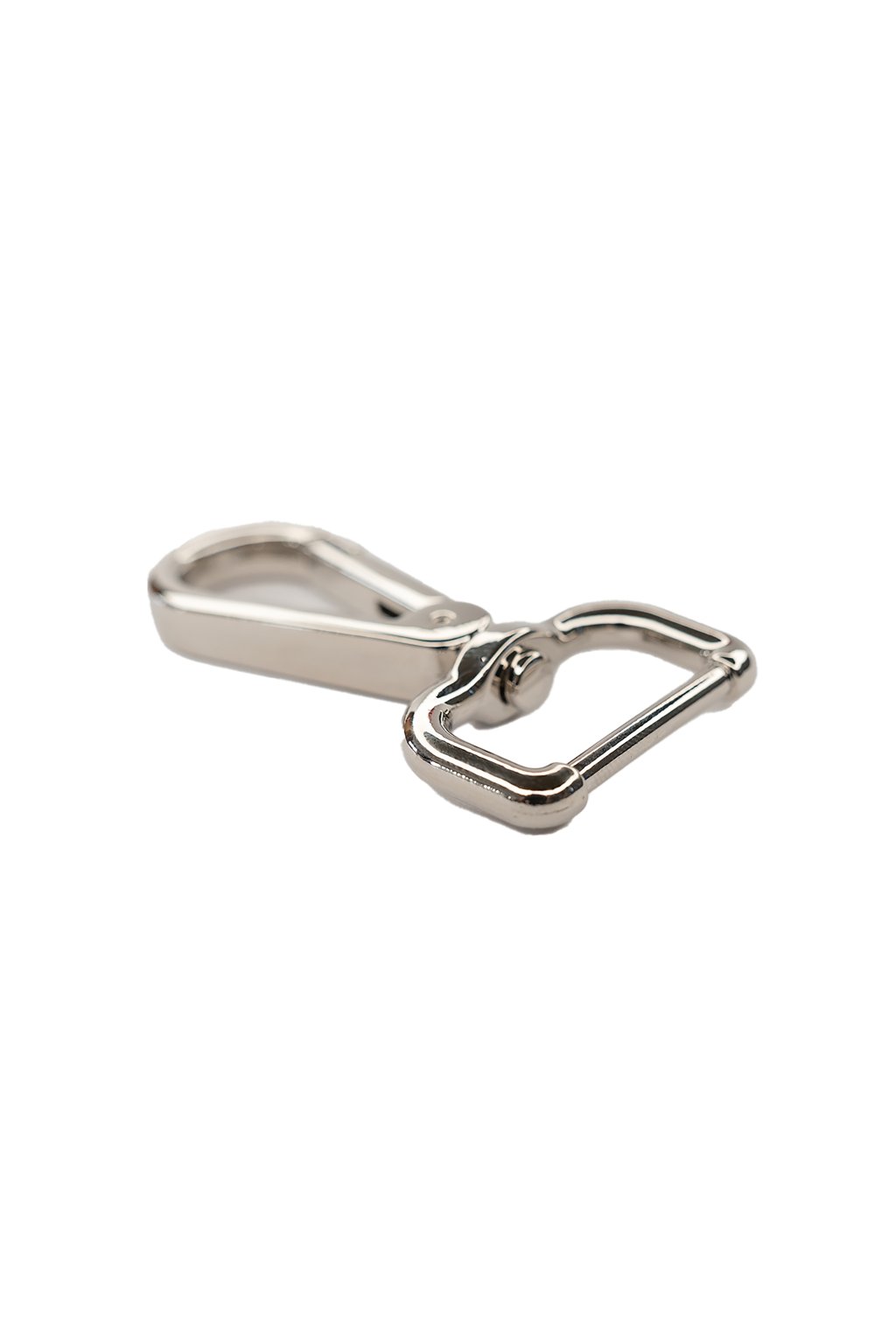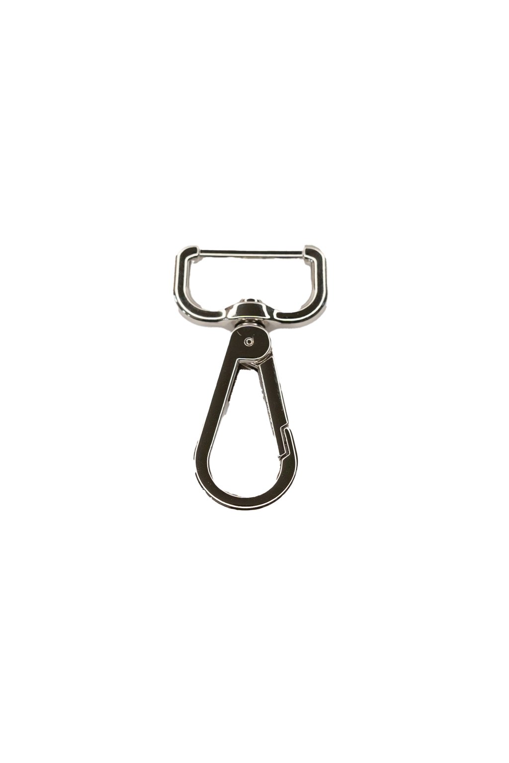 Karabínka kovová, strieborná, šírka prievlaku 25 mm - M110