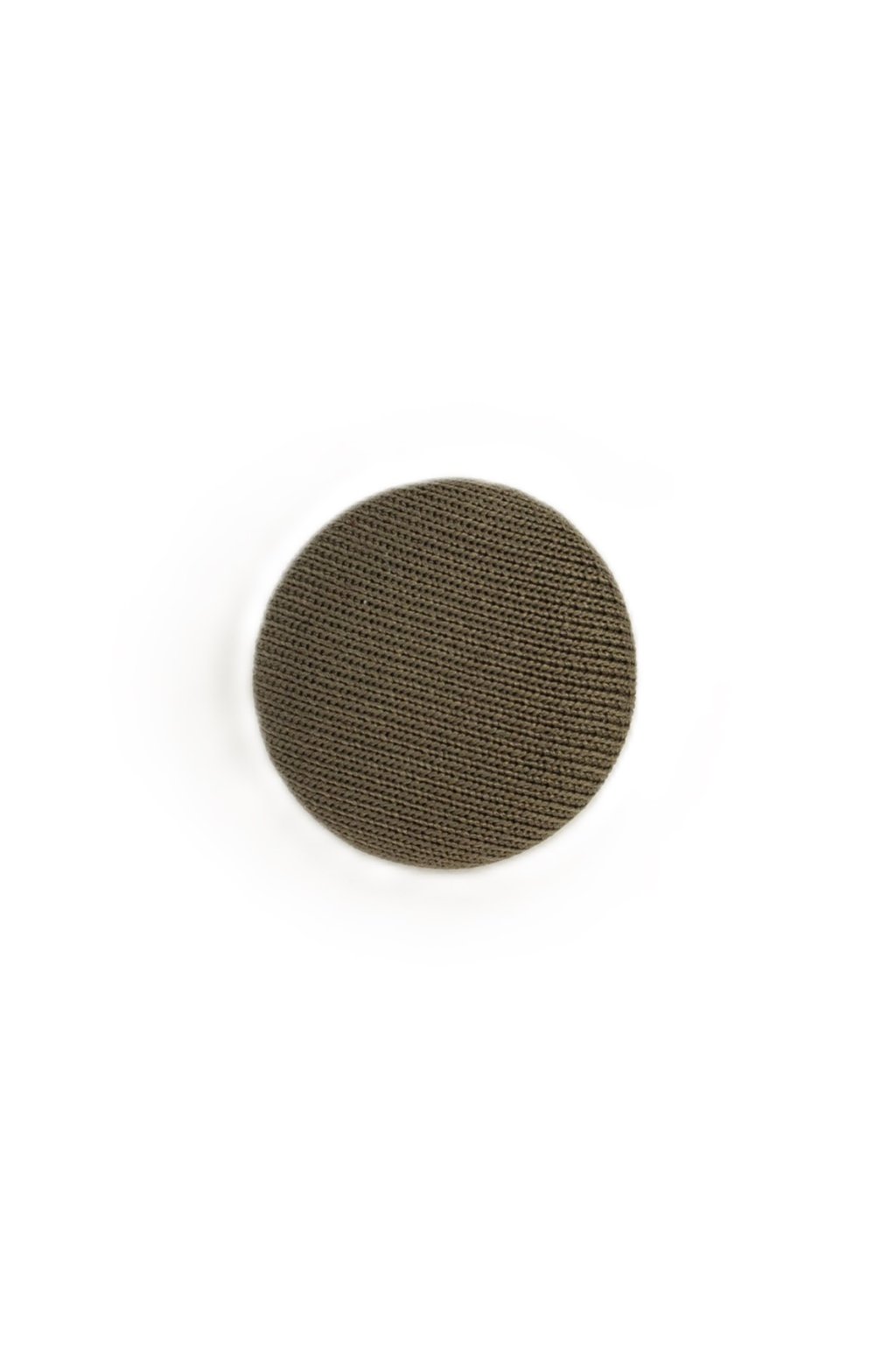 Látkový poťahovaný gombík hnedej farby, vhodný na odevy a do čalúnnického priemyslu.