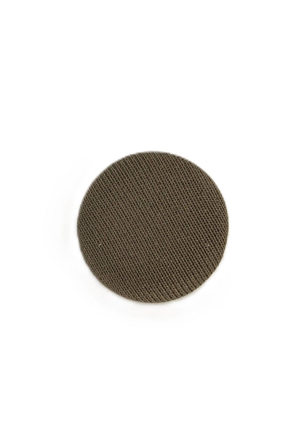 Látkový poťahovaný gombík hnedej farby, vhodný na odevy a do čalúnnického priemyslu.