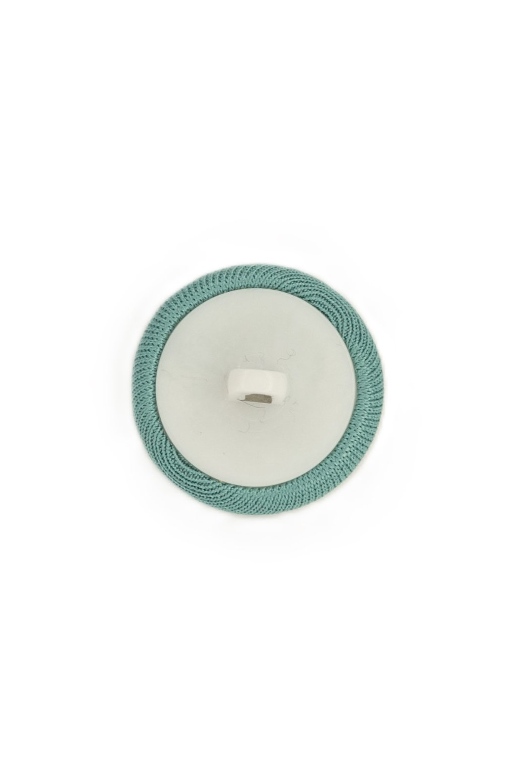 Látkový poťahovaný gombík modrej farby, vhodný na odevy a do čalúnnického priemyslu.
