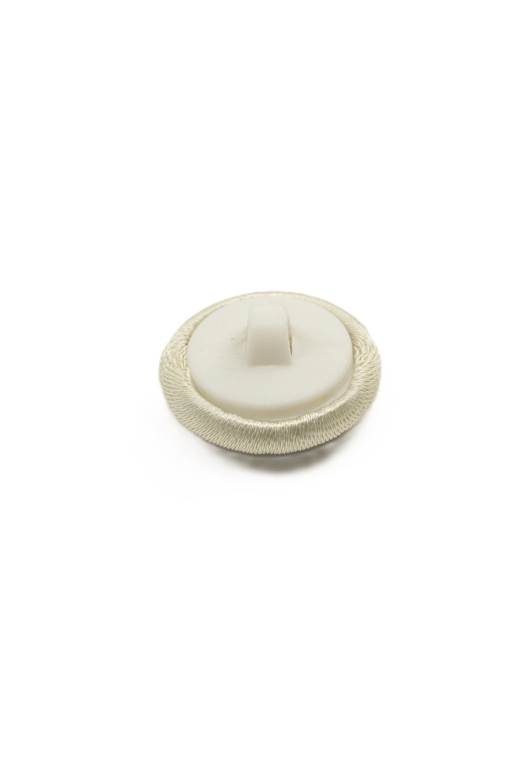 Látkový poťahovaný gombík smotanovej farby, vhodný na odevy a do čalúnnického priemyslu.
