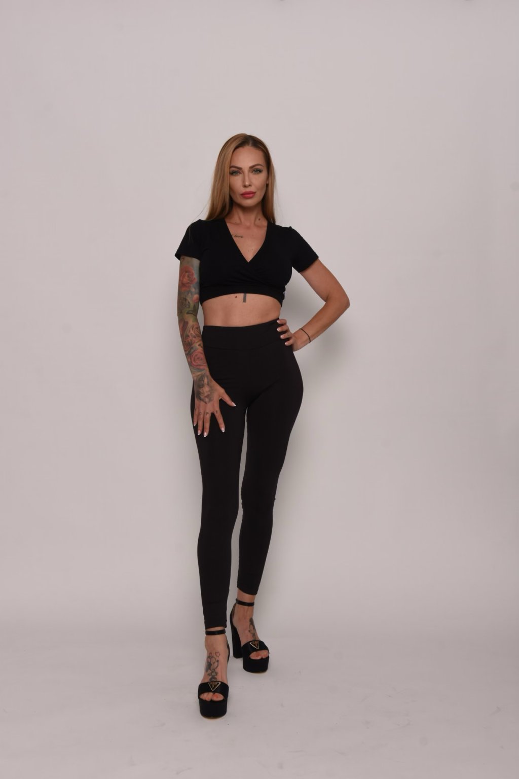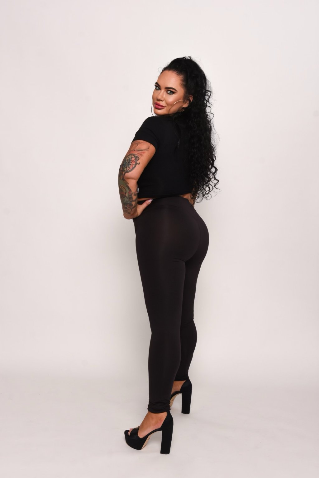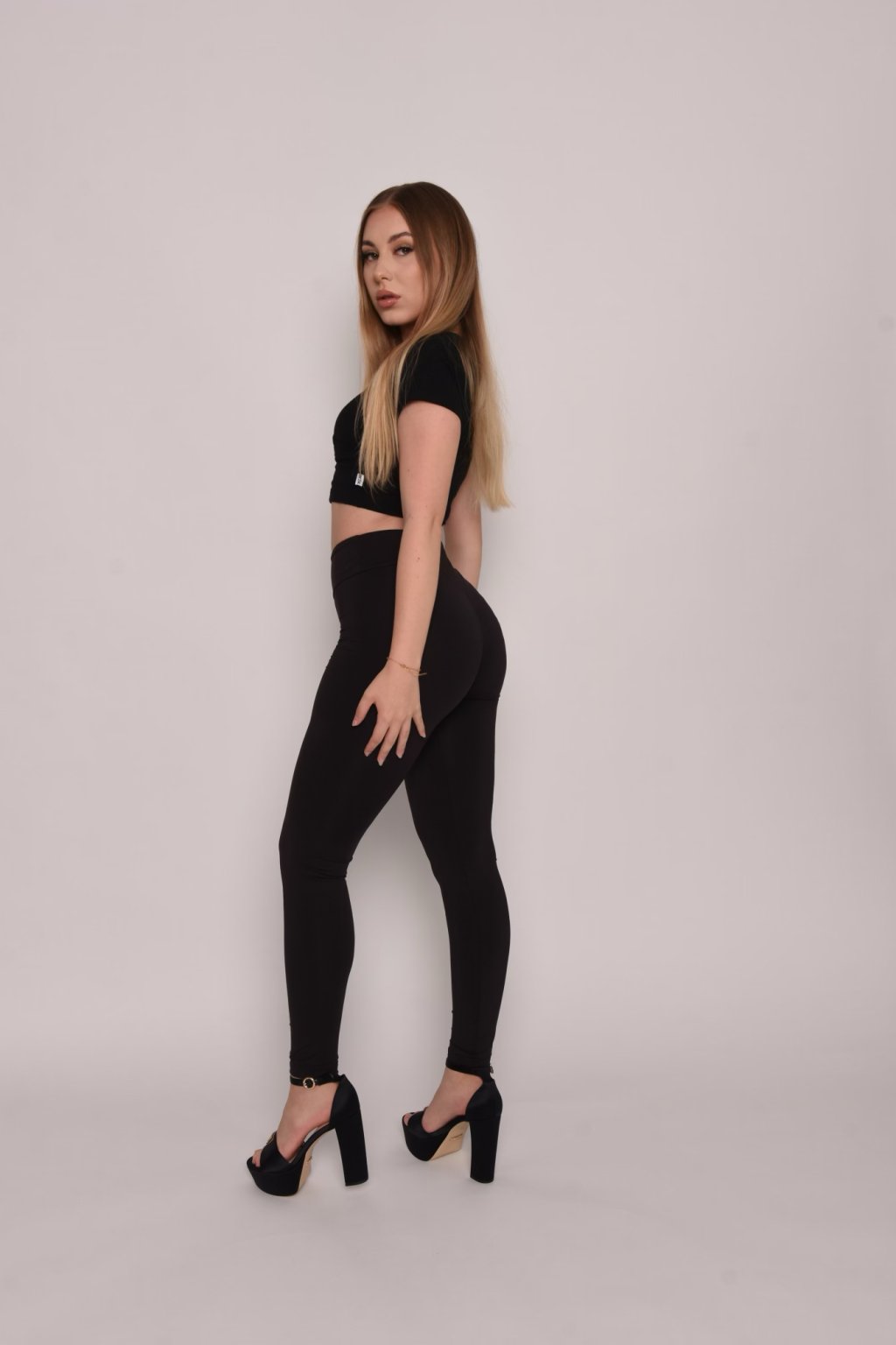 Dlhé pohodlné legíny z recyklovaného polyesteru pekne tvarujúci postavu. Nazberaná gumička na zadnom dieli vytvára efekt dokonalého zdvihnutého zadočku
