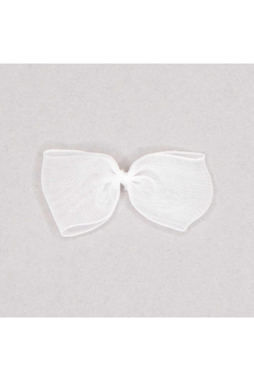 Ozdobná šifónová mašlička bielej farby určená na našívanie, napr. na spodnú bielizeň.