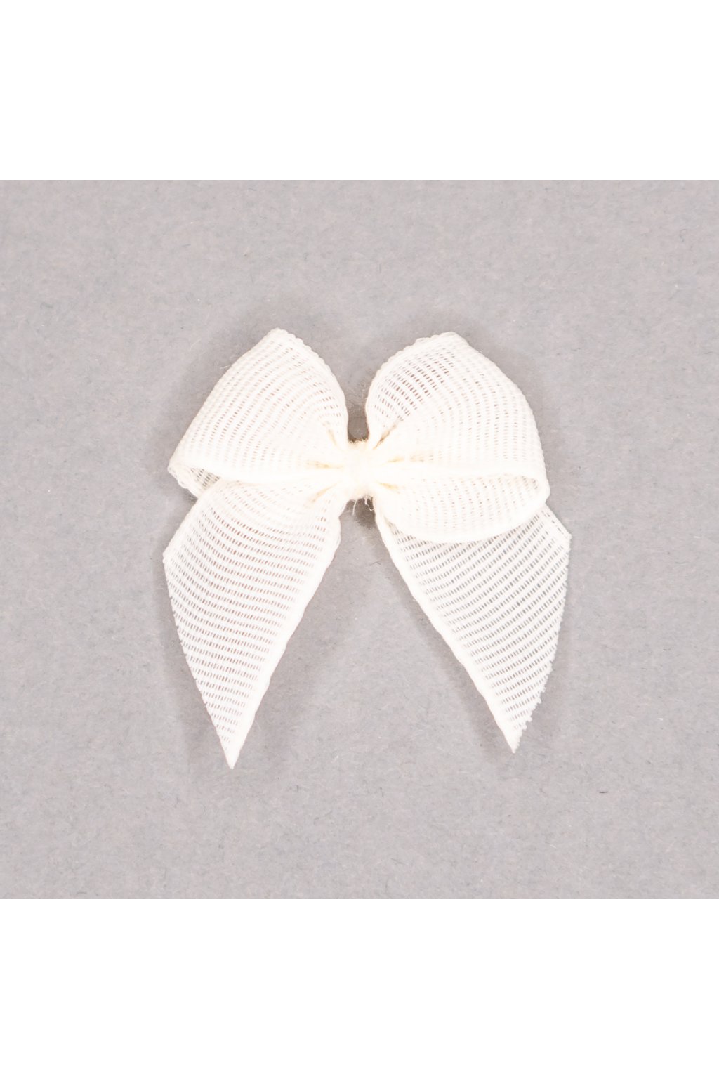 Ozdobná mašlička z jemnej ripsovej stuhy krémovej farby určená na našívanie, napr. na spodnú bielizeň.
