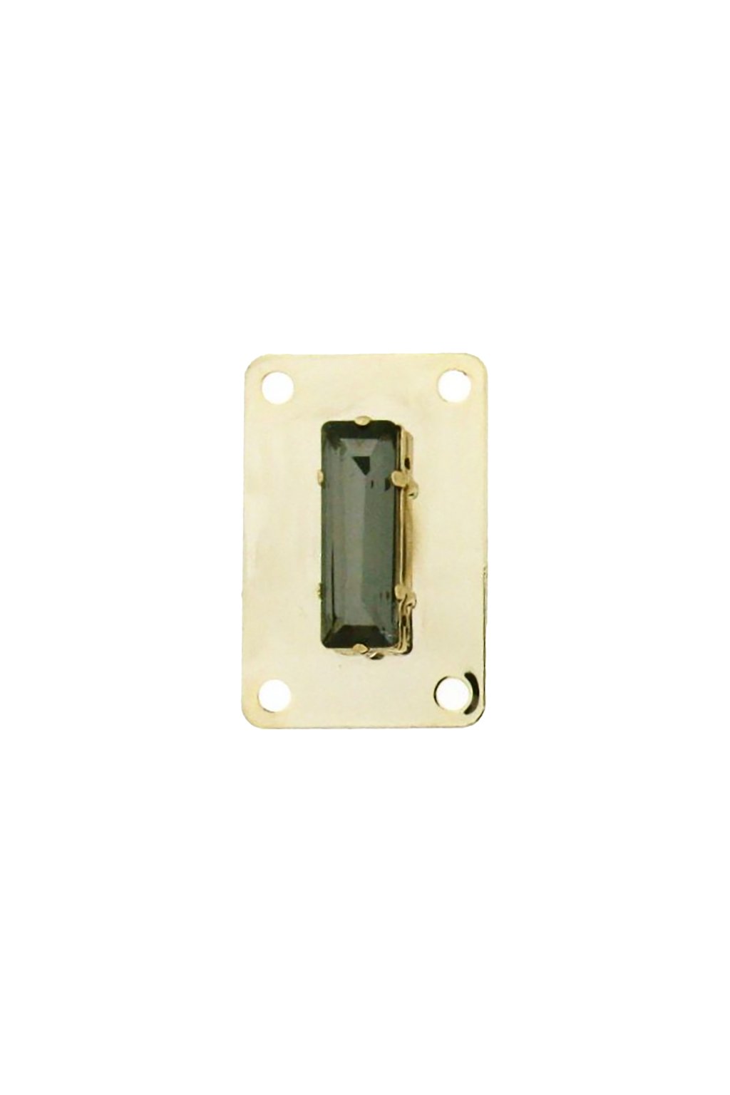 Ozdobná zlatá platnička so štyrmi otvormi, s obdĺžnikovým dymovým kryštálom 24 x 8 mm uprostred.