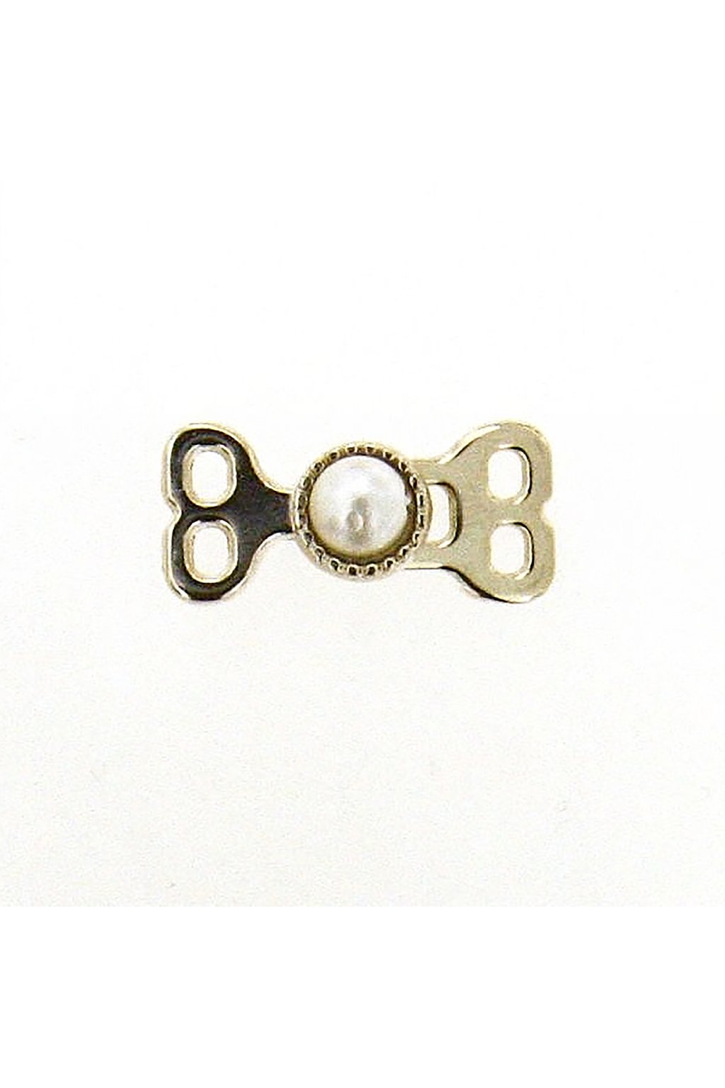 2-dielny kovový háčik, zlatej farby, s perleťovo bielym stredovým perlovým kameňom.