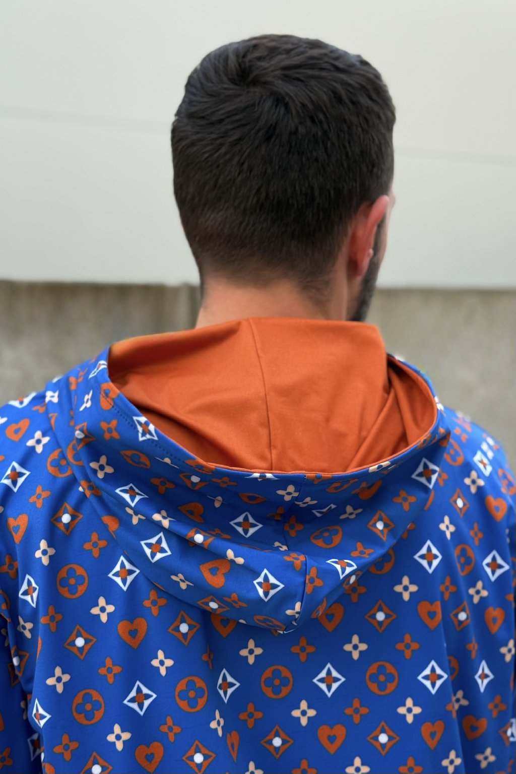 - veľká kapucňa podšitá originálnou oranžovou podšívkou
