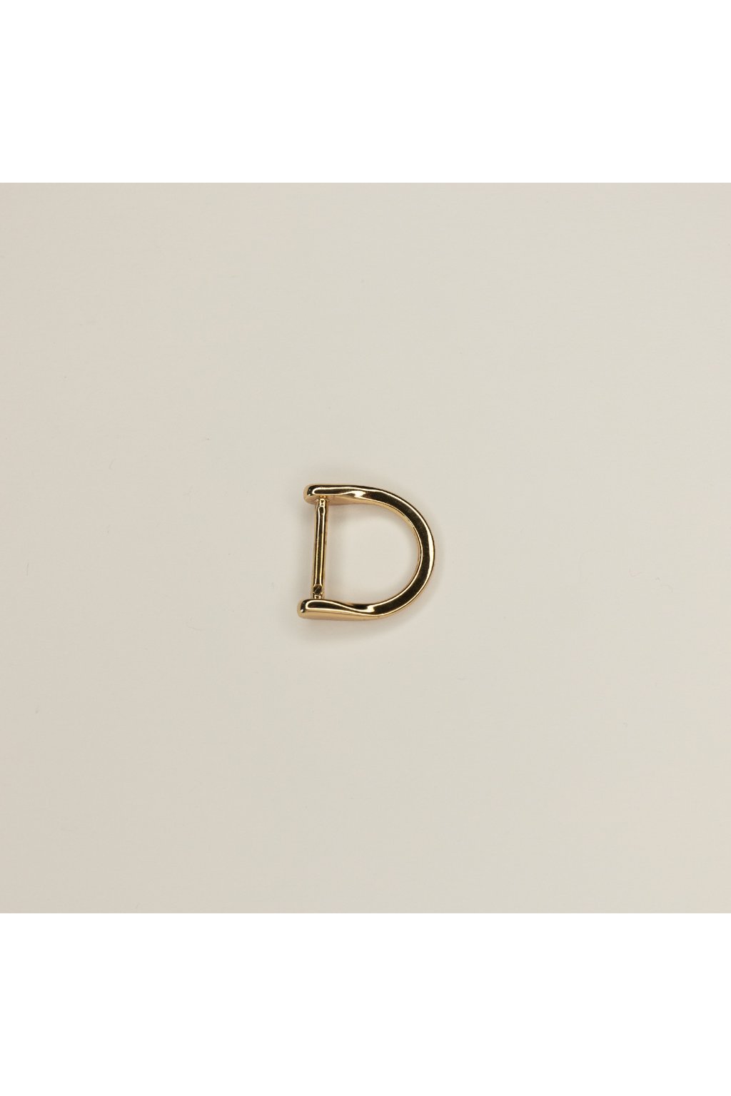 Zlatá pracka v tvare D. Vhodná ako ozdoba na odevy, opasky, tašky a kabelky.