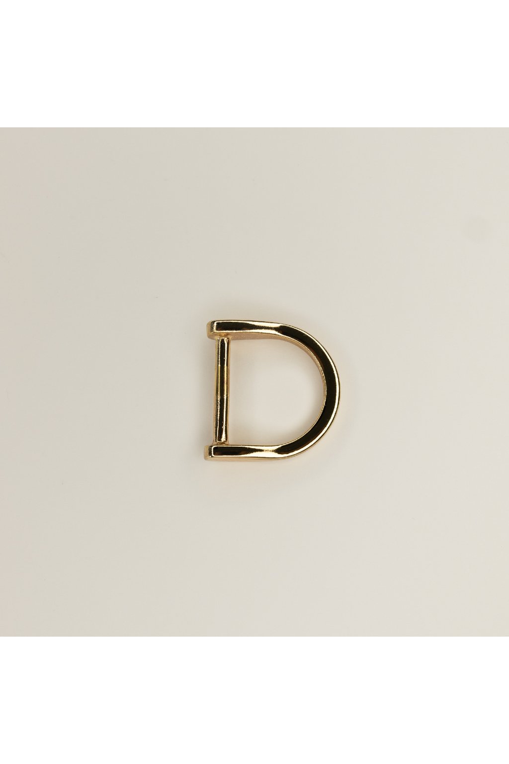 Zlatá pracka v tvare D. Vhodná ako ozdoba na odevy, opasky, tašky a kabelky.