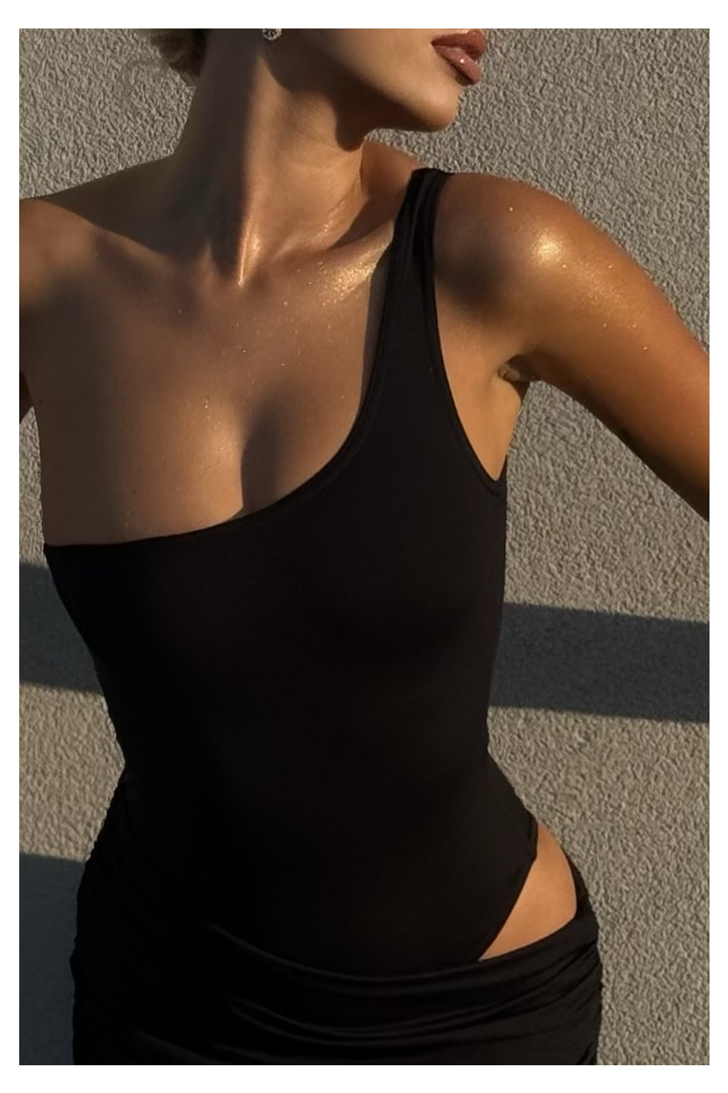 Strih na jedno rameno, výrazný výrez v páse a čisté línie vytvárajú krásnu siluetu, ktorá vynikne pri každej príležitosti – od večernej udalosti až po módne stretnutie v meste.