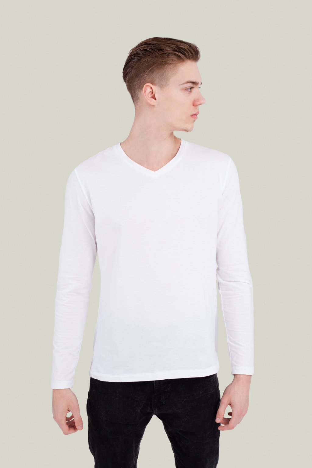 Tričko je klasického voľnejšieho strihu s dlhým rukávom s výstrihom do V