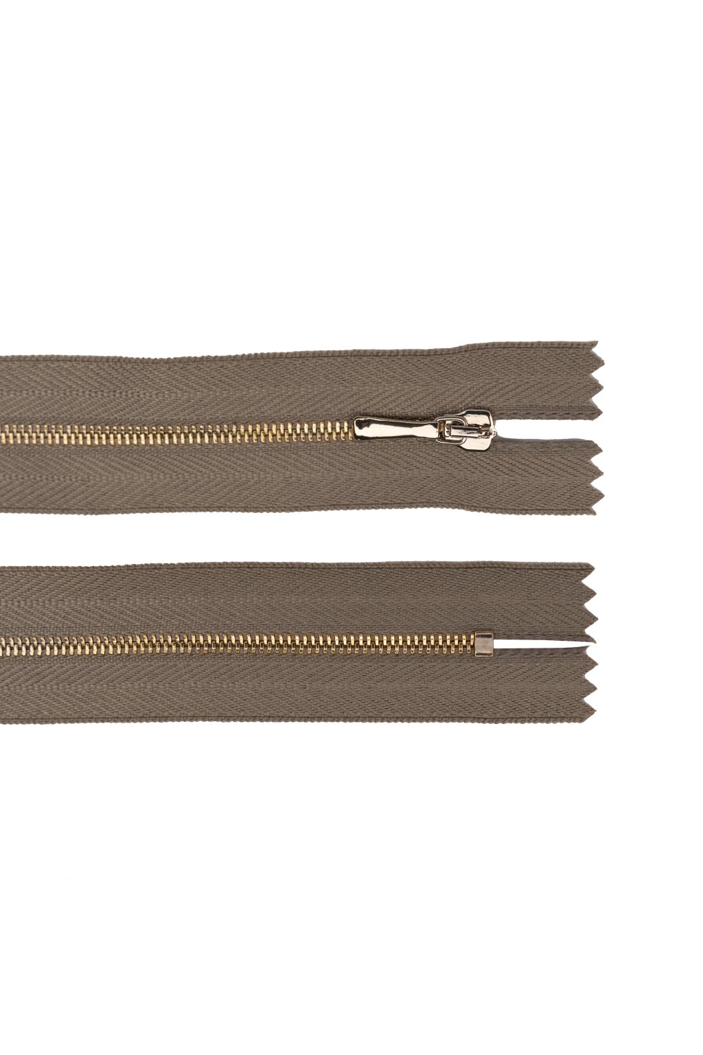 Zips bledo hnedý, kovový zlatý, šírka zúbkov 3 mm, dĺžka 19 cm - K83