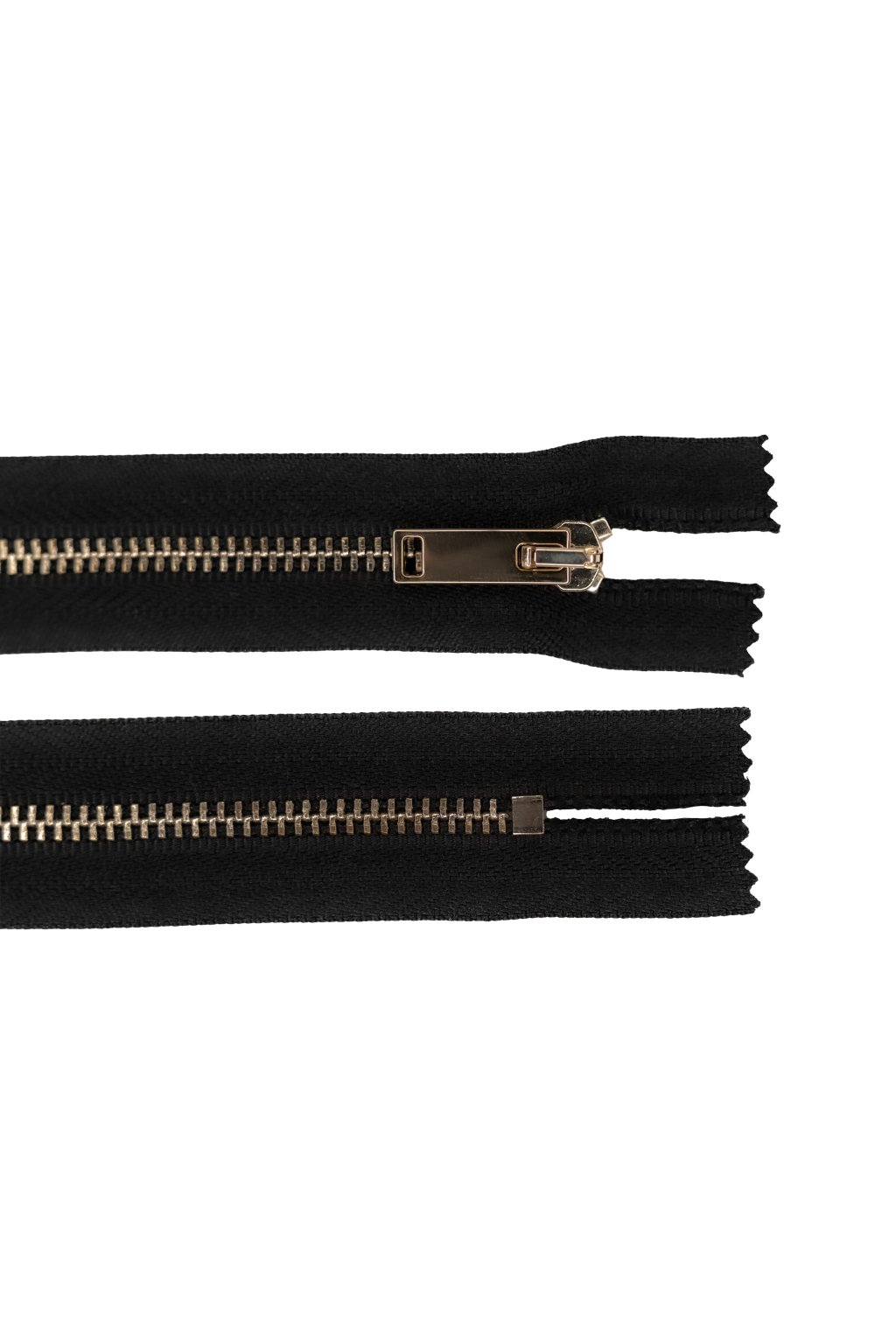 Zips čierny, kovový zlatý, šírka zúbkov 5 mm, dĺžka 13 cm - K242