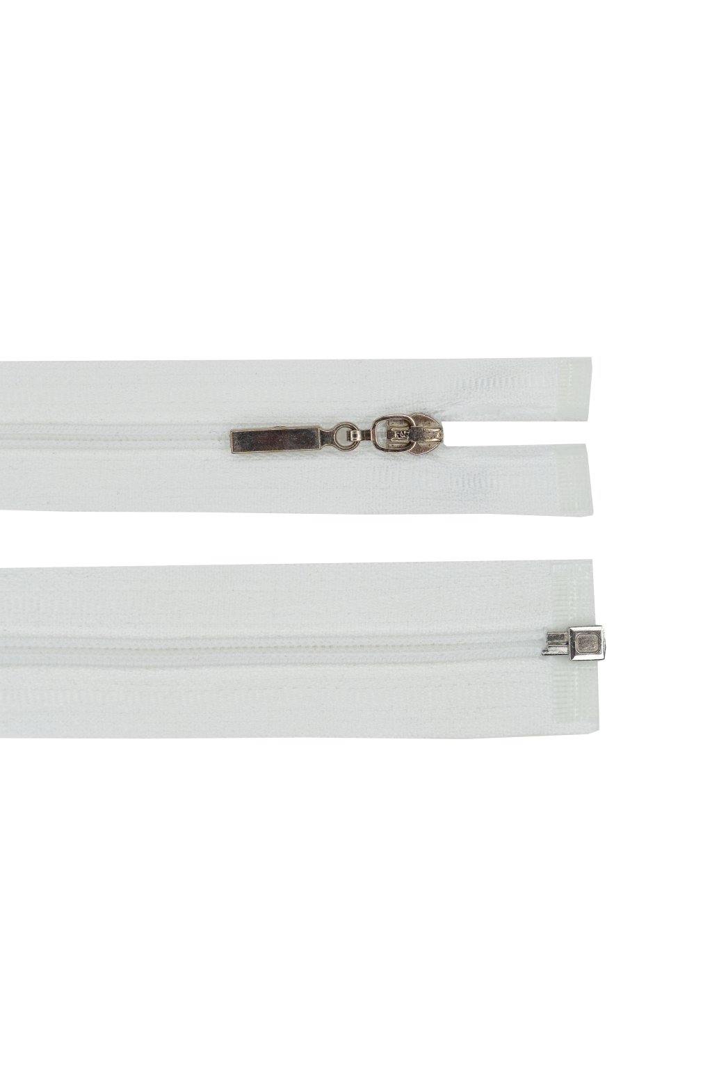 Pevný špirálový zips s nedeliteľnými umelými zúbkami, s hranatým strieborným bežcom. Vhodný do nohavíc a sukní. Pri styku s vodou nehrdzavie.