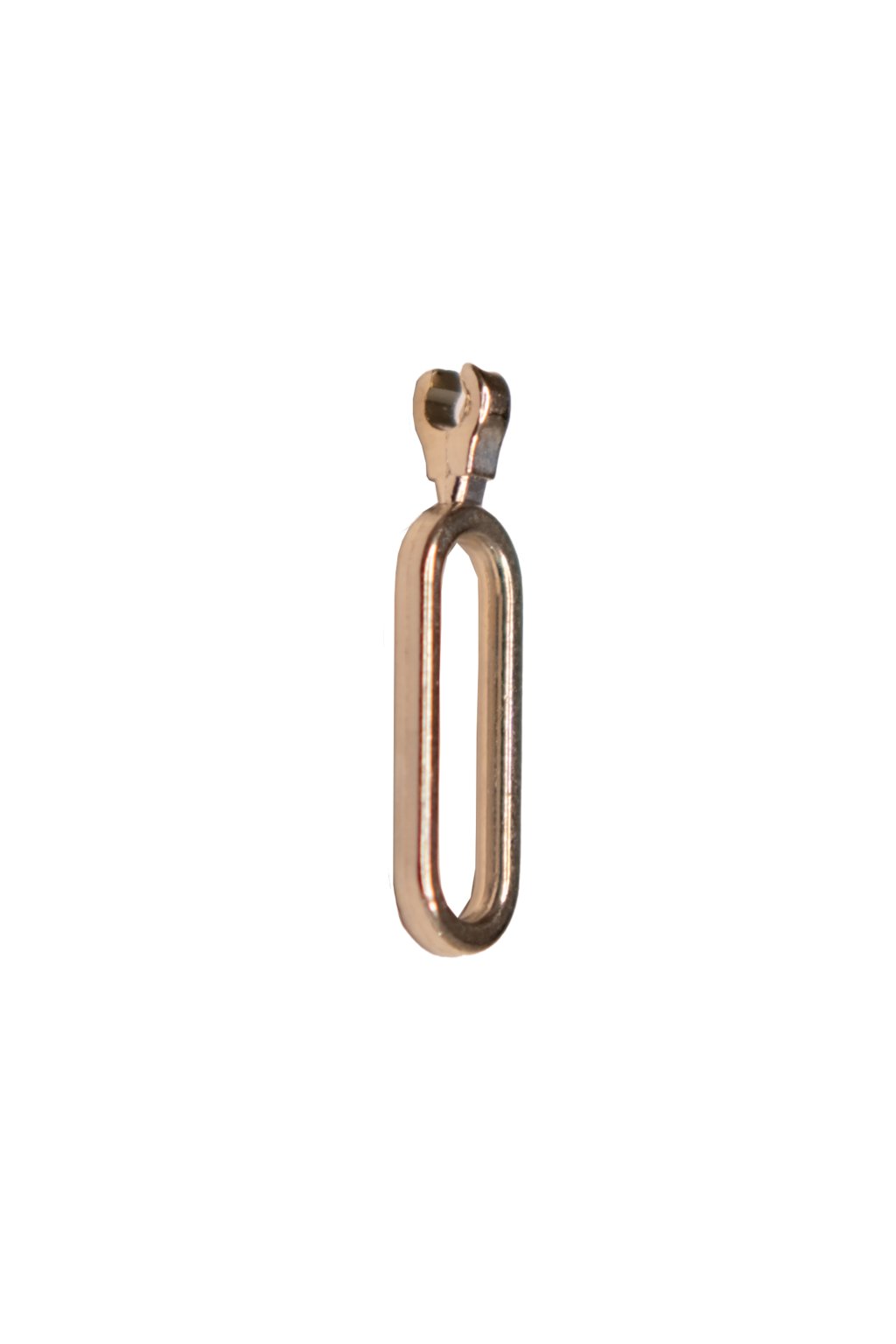Zipsový ťahač zo svetlozlatého kovu v tvare malého oválu.