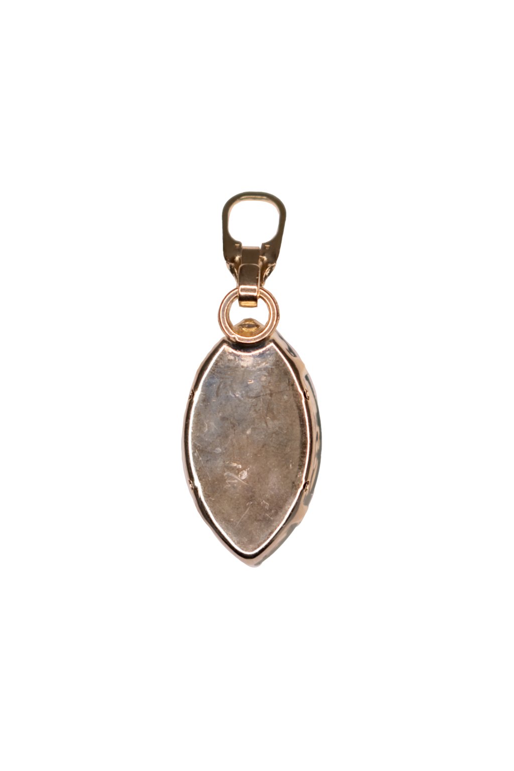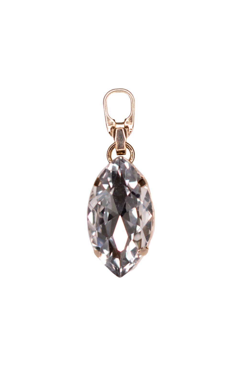 Zipsový dizajnový ťahač zo svetlozlatého kovu so vsadeným kryštálom v tvare slzy.