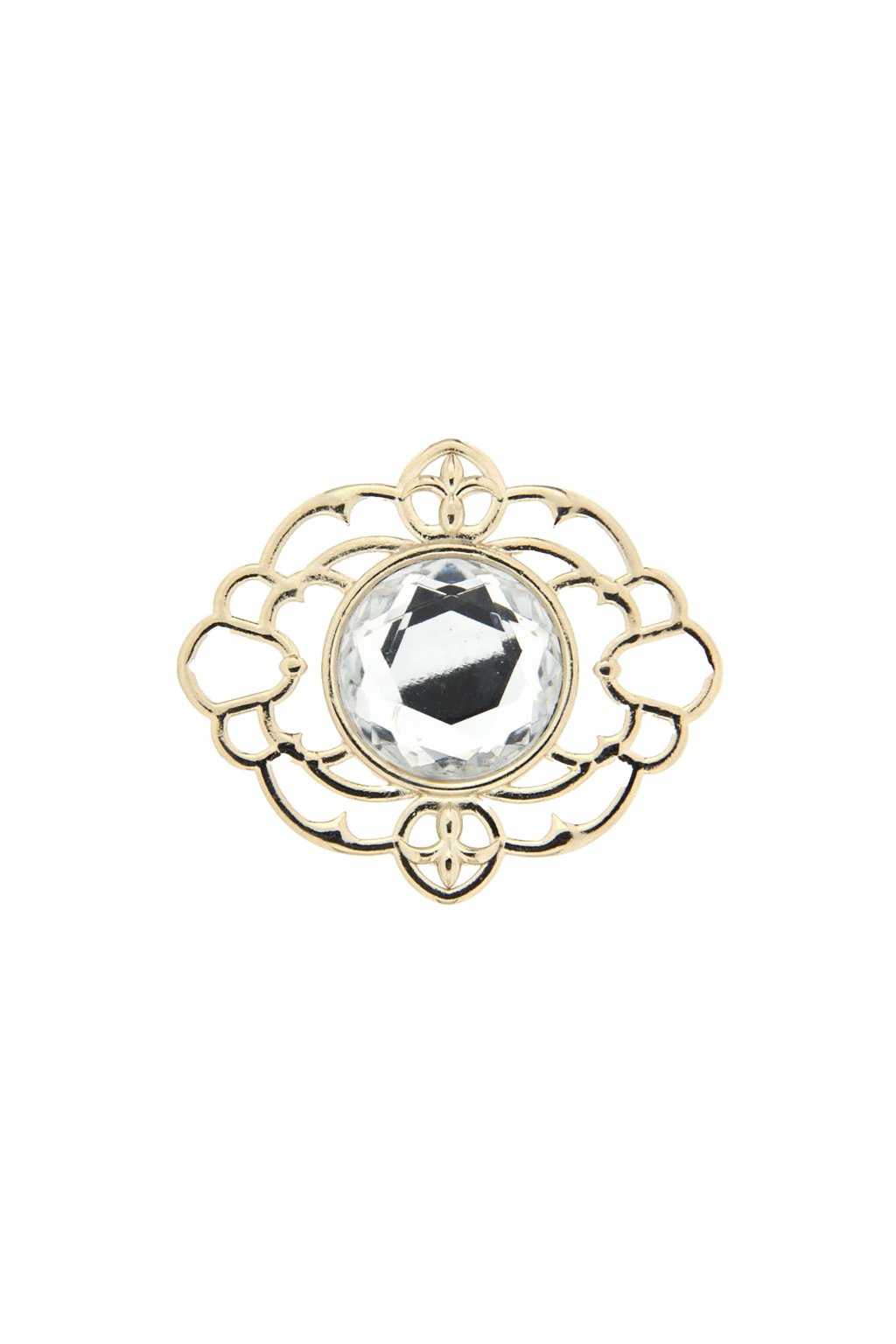 Zlatá ozdobná aplikácia s kryštálom, 60 mm x 52 mm - A307